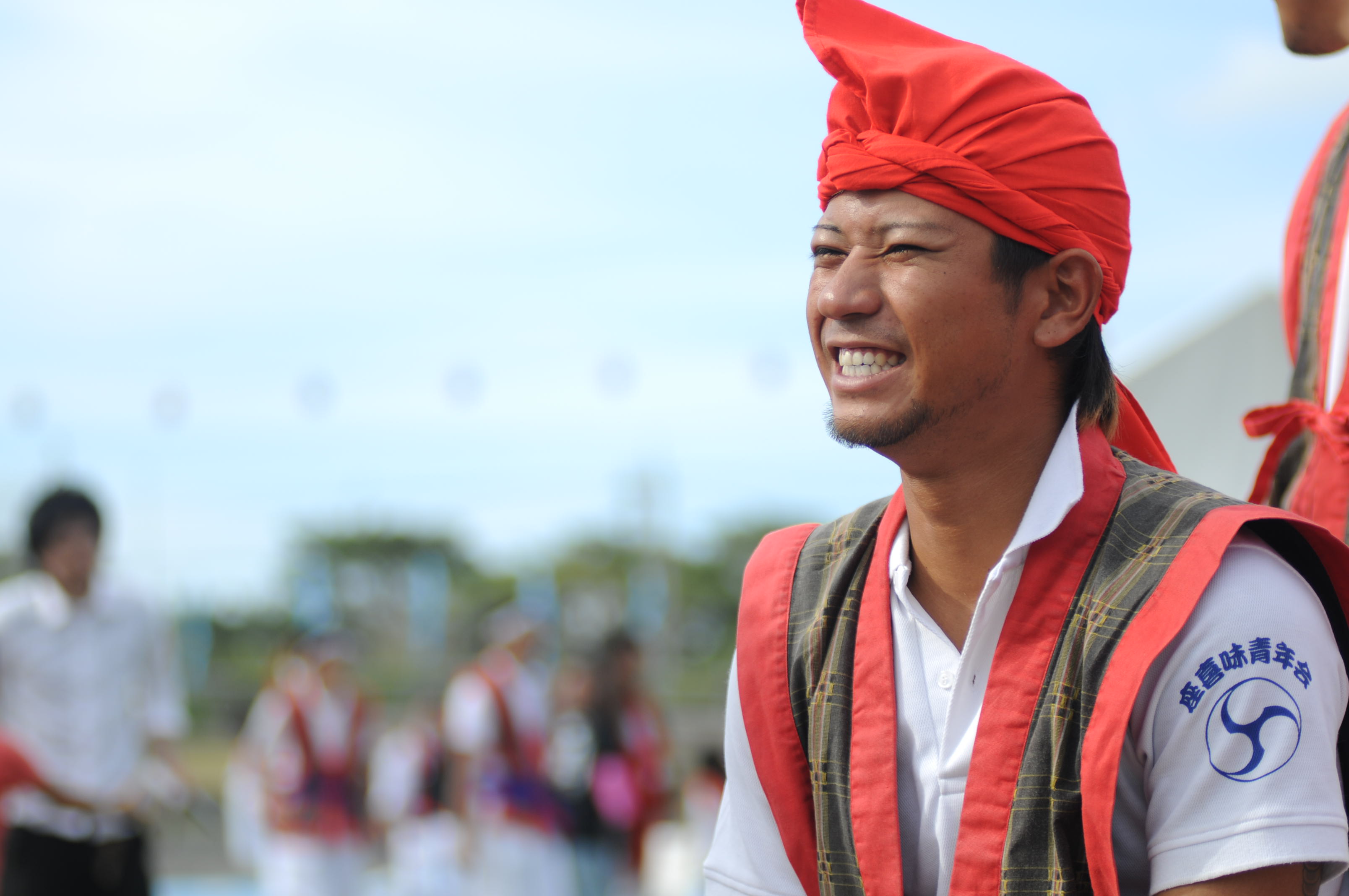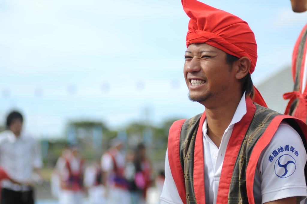 A drummer takes a break between performances at the 58th Okinawa Zento Eisa Matsuri contest in Okinawa City, Okinawa, Sept. 1. Lisa Tourtelot/Stars and Stripes