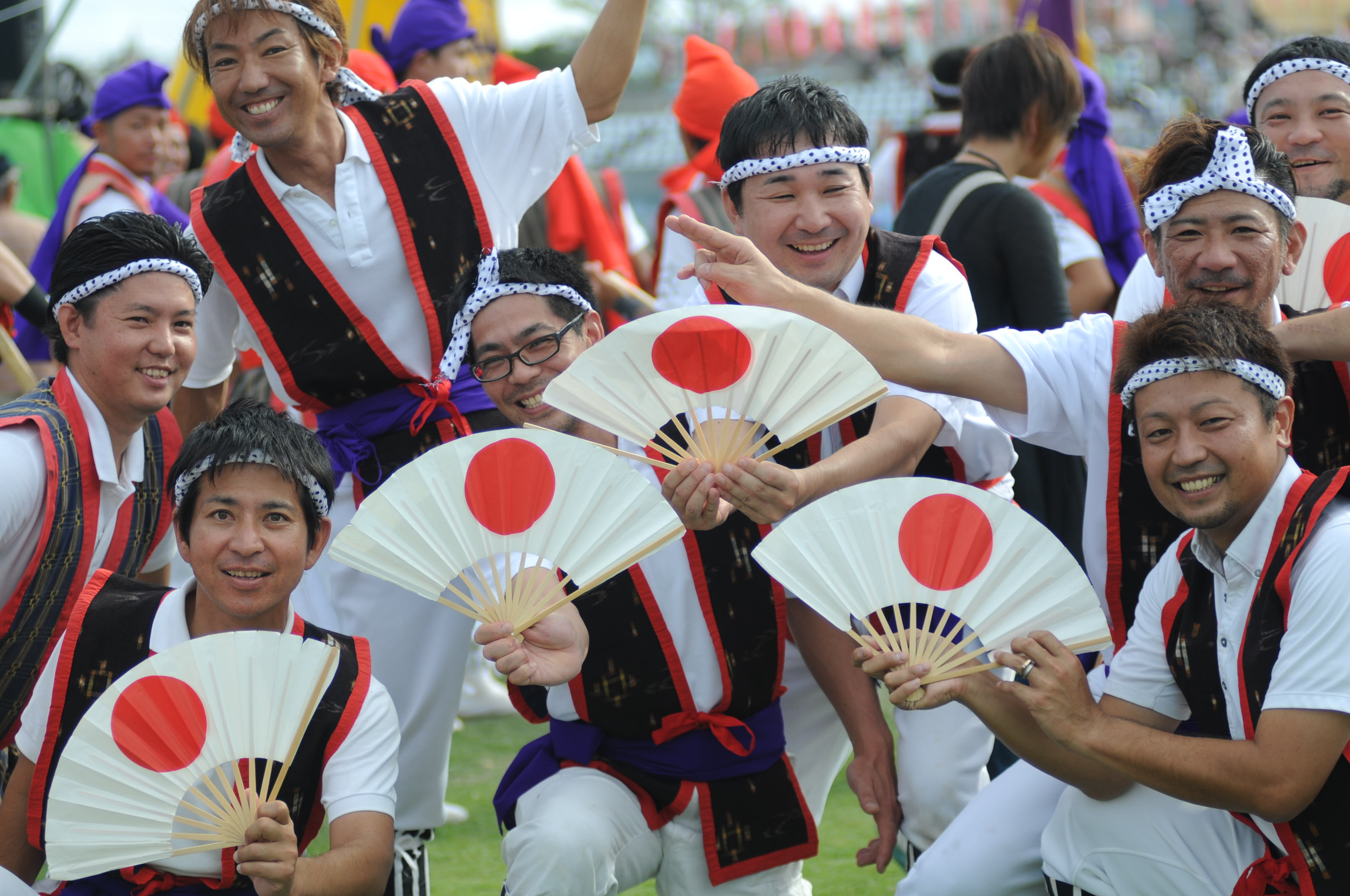 Performers gather for a picture before their show at the 58th Okinawa Zento Eisa Matsuri contest in Okinawa City, Okinawa, Sept. 1. Lisa Tourtelot/Stars and Stripes