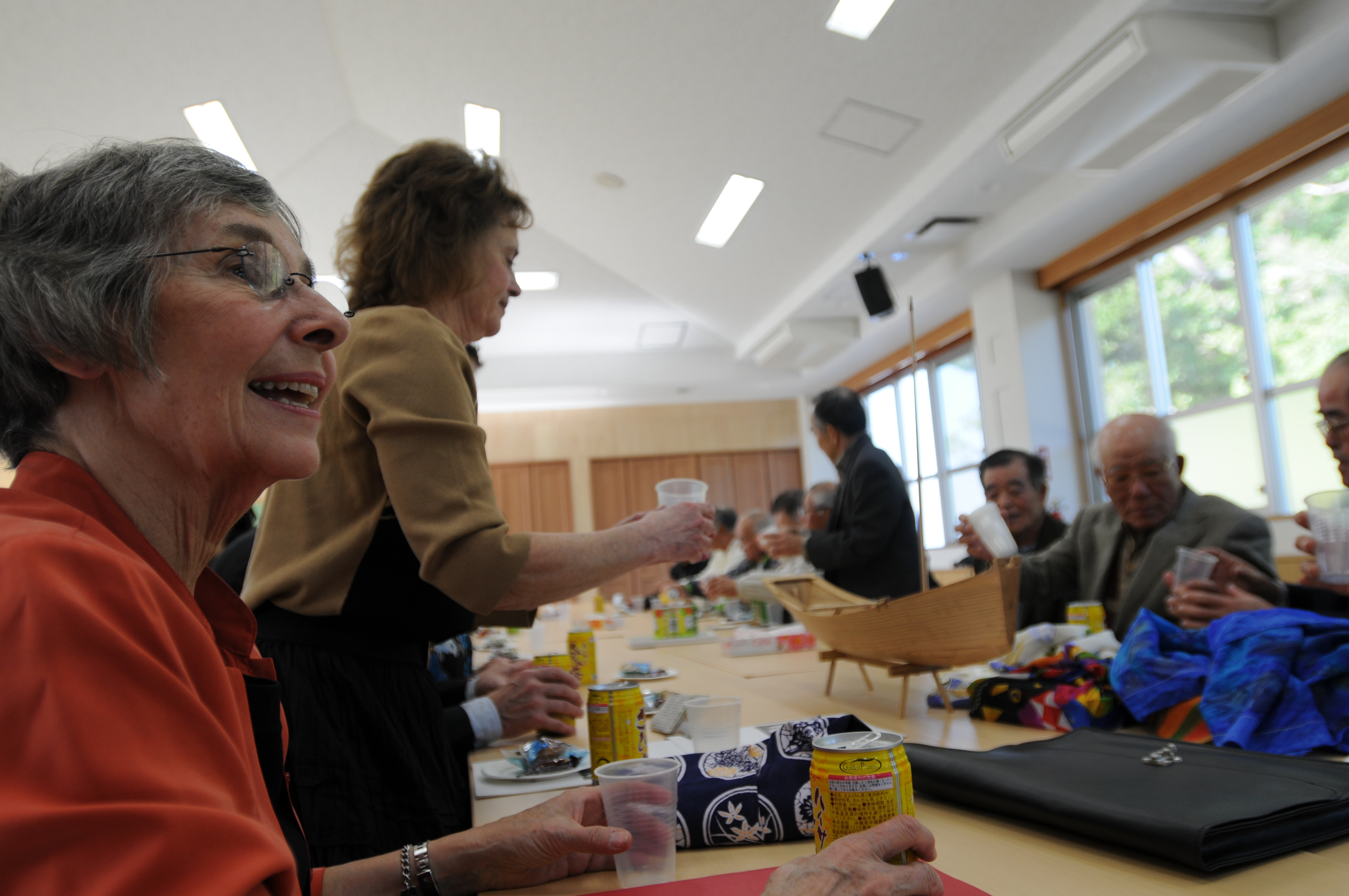 Carolyn Wieden, widow of Francis “Duke” Wieden, prepares for the formal toast following the return of the Sunabe family’s photo album in a ceremony in Chatan, Okinawa, Jan. 12, 2014. (Lisa Tourtelot/Stars and Stripes)