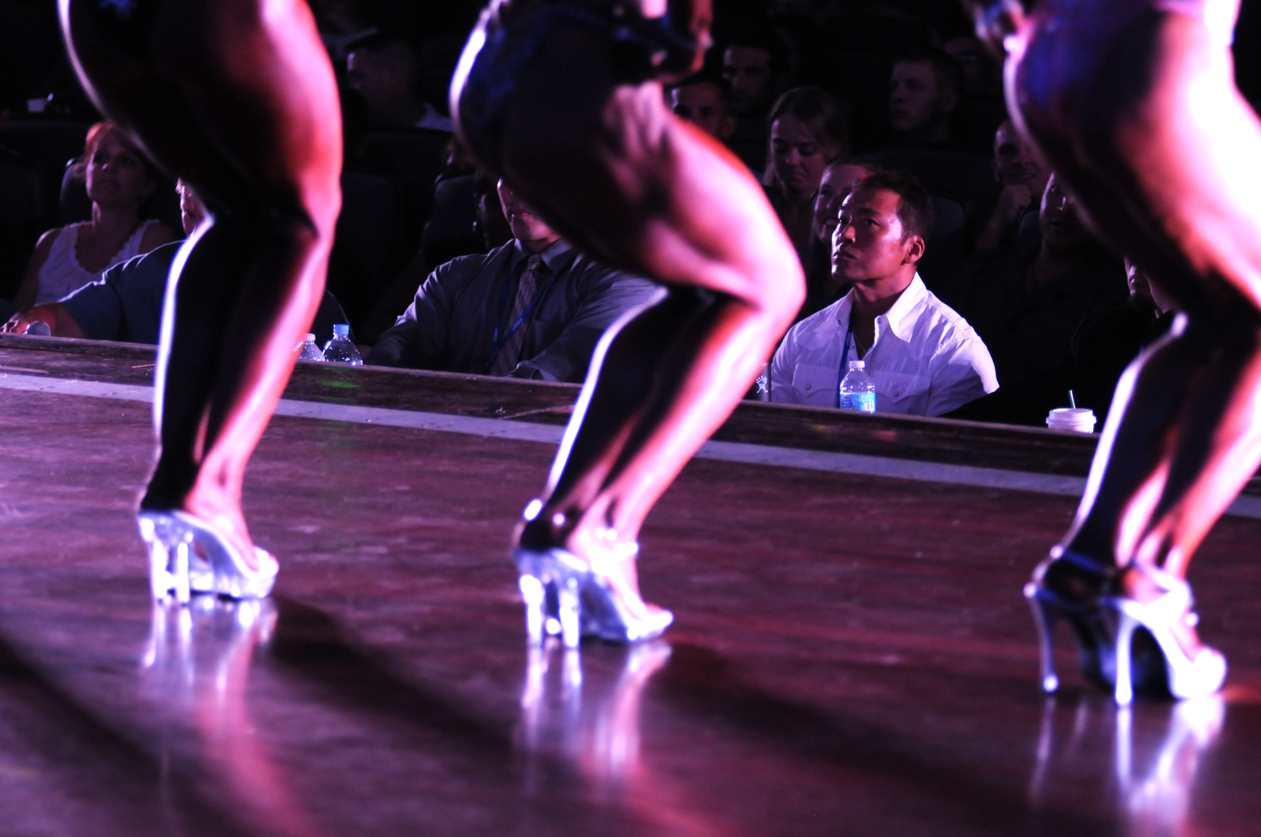 Contestants at the 8th annual Pacific Muscle Classic on Kadena Air Base, Okinawa, strike a pose as they compete for both figure and bodybuilding trophies May 18, 2014. (Lisa Tourtelot/Stars and Stripes)