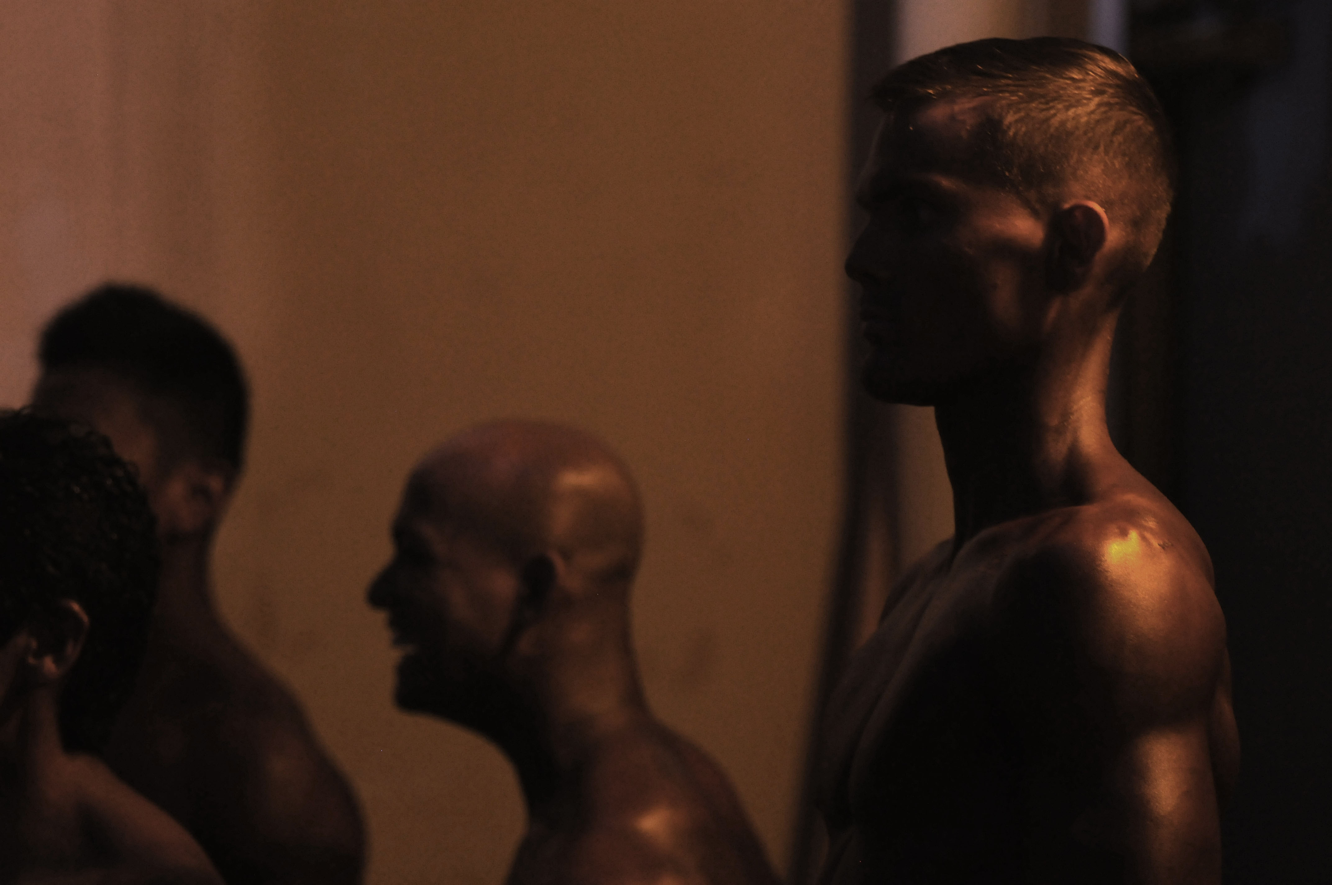 Contestants at the 8th annual Pacific Muscle Classic on Kadena Air Base, Okinawa, prepare backstage to compete for both figure and bodybuilding trophies May 18, 2014. (Lisa Tourtelot/Stars and Stripes)