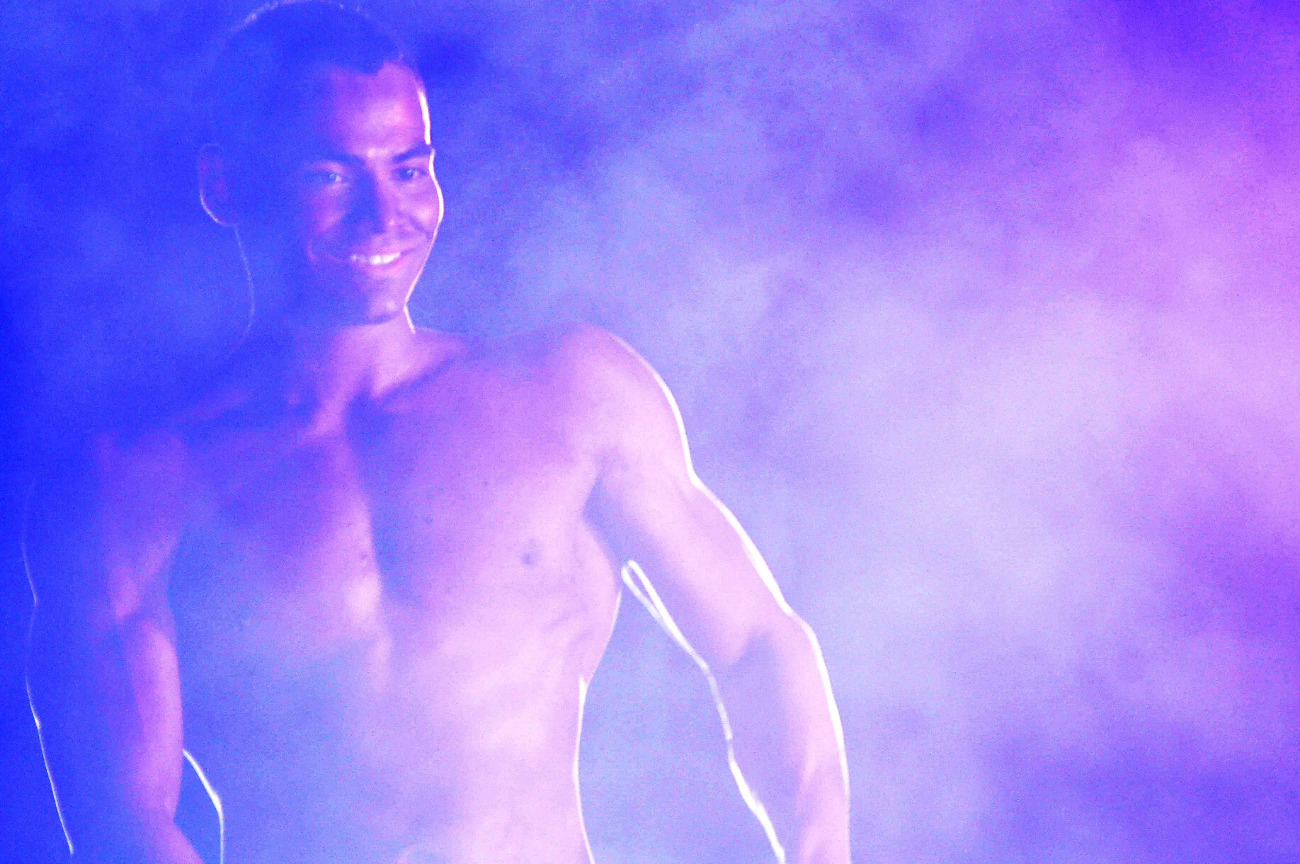 Joshua Guerrero, the men’s bantamweight third place winner, moves on stage at the 8th annual Pacific Muscle Classic on Kadena Air Base, Okinawa, May 18, 2014. (Lisa Tourtelot/Stars and Stripes)