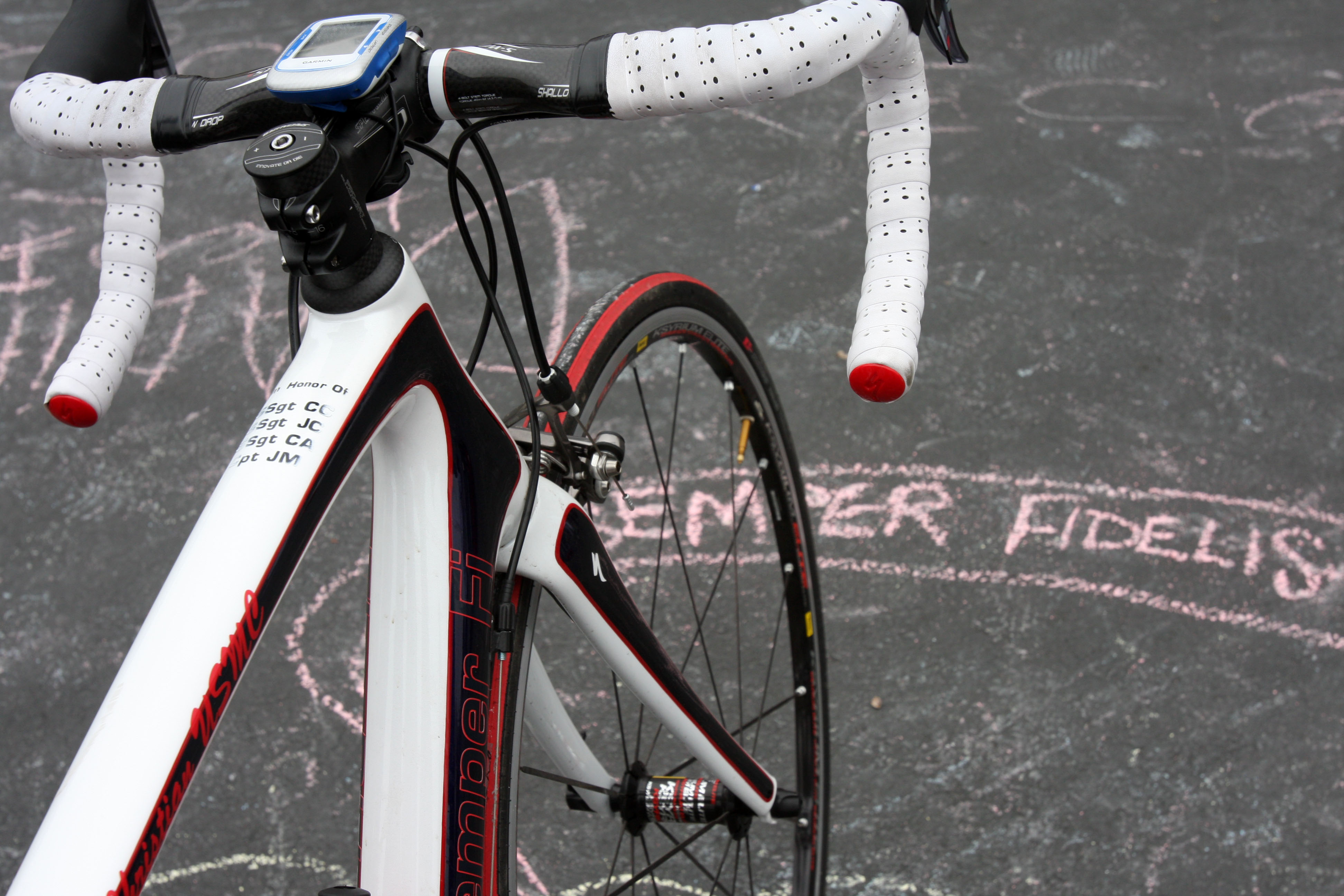 Maj. Andy Christian, the commanding officer of Alpha Company, 1st Marine Special Operations Command, presents his custom cycle, which bears the names of special operations Marines who have died in combat. Christian rode the cycle from Phoenix to San Diego for The Ride for Semper Fi which raised $250,000 for the Semper Fi Fund.