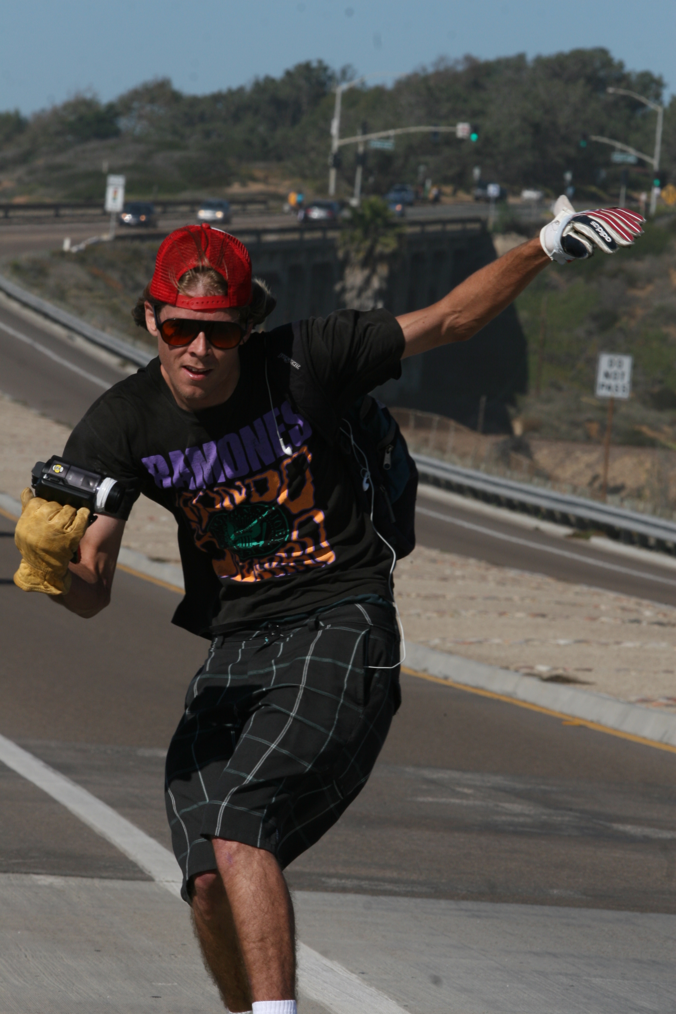 Zack Mayll, a Honey Longboard team skater, “bombs” a hill near the end of a 25-mile skate from Oceanside, Calif., to Torrey Pines State Beach Nov. 13. Mayll joined almost 50 other longboarders in Skate for the Troops which raises money for The Injured Marine Semper Fi Fund.