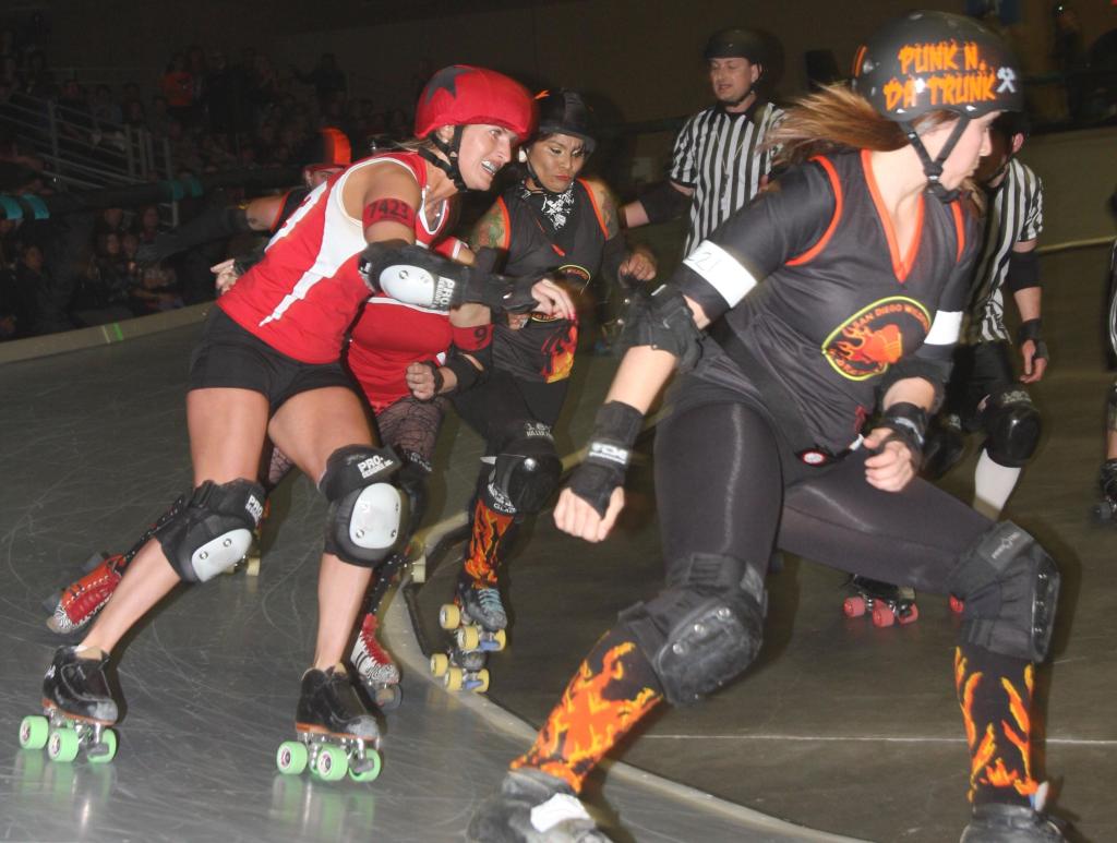 Jammers race to the front of the pack at the Del Mar Fairgrounds in San Diego, March 26. The San Diego Wildfires duked it out against Colorado’s Rocky Mountain Roller Girls, but Rocky Mountain skated away with a 125-100 win.