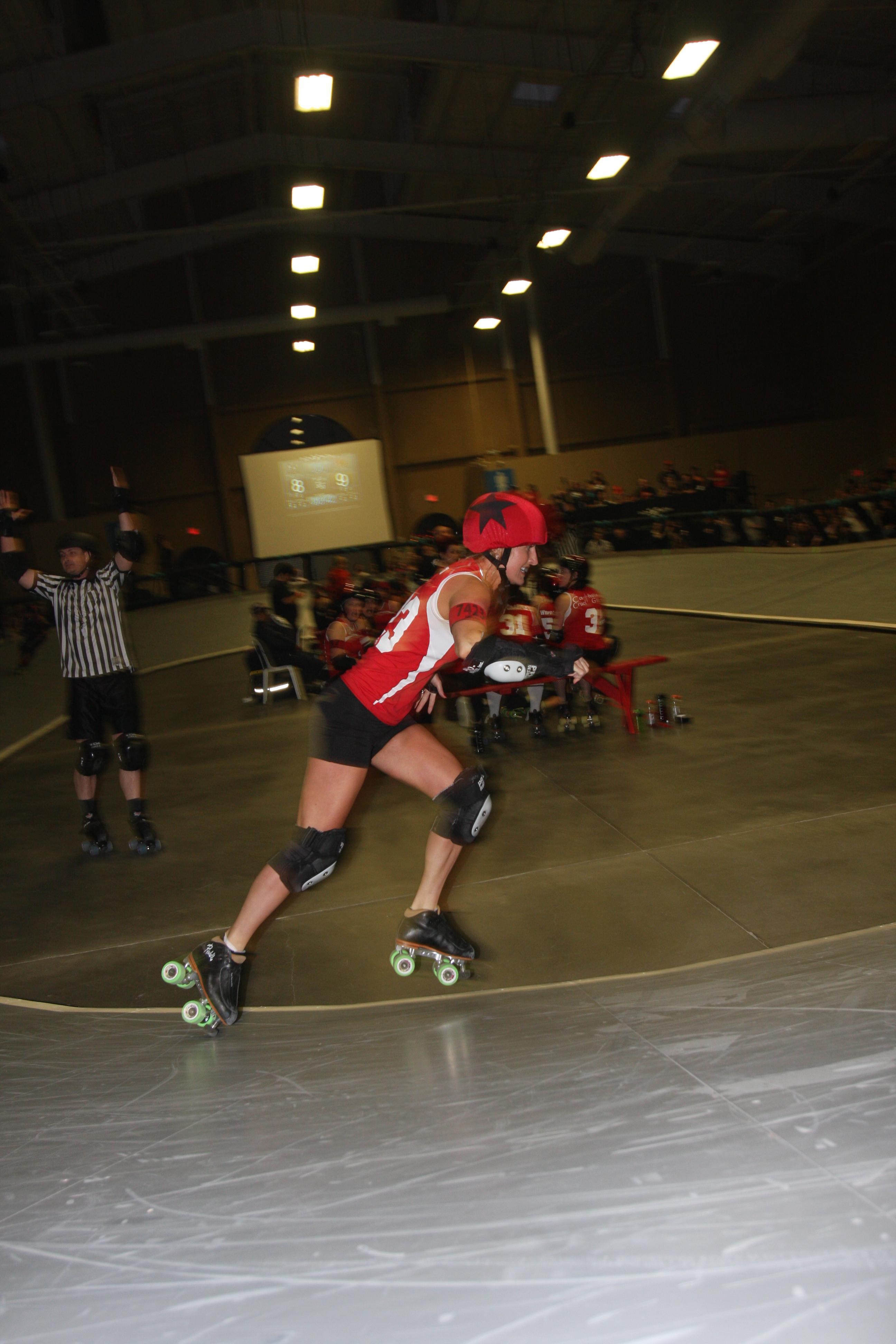 Triple Shot Misto, a jammer from Rocky Mountain Rollergirls, springs free of the pack at the Del Mar Fairgrounds in San Diego, March 26. Colorado’s roller derby team battled the San Diego Wildfires and won, 125-100.